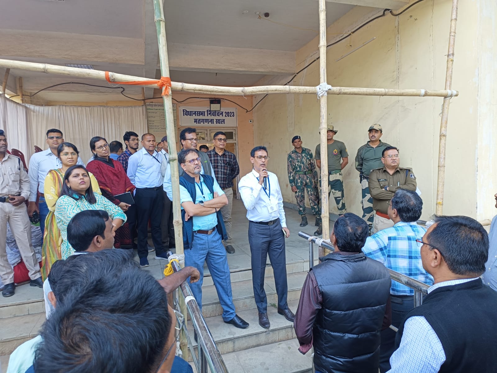 ईव्हीएम लाने-ले जाने वाले कर्मचारियों को क्रमवार स्ट्रांग रूम से मतगणना कक्ष तक सावधानीपूर्वक जाने के निर्देश दिए गए। मौके पर संलग्न पुलिस कर्मचारियों, अधिकारियों को मुस्तैदी से अपनी ड्यूटी करने के निर्देश दिए। मतगणना हाल में मोबाइल या पेन सहित अन्य सामग्री ले जाने पर प्रतिबंध होगी। इस दौरान अपर कलेक्टर श्री दिनेश कुमार नाग, अतिरिक्त पुलिस अधीक्षक श्री अभिषेक वर्मा सहित जिला स्तरीय मास्टर ट्रेनर डॉ.एम.एम.जोशी उपस्थित थे।