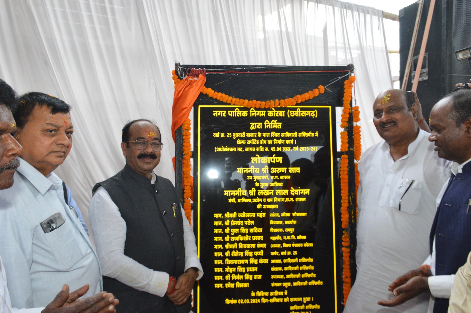कोरबा। प्रदेश के उपमुख्यमंत्री श्री अरूण साव और उद्योग, वाणिज्य एवं श्रम मंत्री छत्तीसगढ़ शासन श्री लखनलाल देवांगन, आज बुधवारी स्थित आदिवासी समाज के शक्तिपीठ के 14वें स्थापना समारोह कार्यक्रम में शामिल हुए। उन्होंने आदिवासी शक्तिपीठ में पूजा-अर्चना कर प्रदेश की खुशहाली और तरक्की के लिए आशीर्वाद भी मांगा। इस दौरान परिसर में 45.84 लाख रूपए के डोम का लोकार्पण भी किया गया।