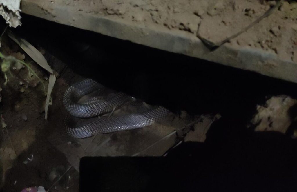 : <em>आधी रात 112 टीम की मदद से हुआ कोबरा रेस्क्यू, बाहर निकालते ही यहां वहां डर से भागे लोग, जितेन्द्र सारथी ने किया रेस्क्यू।</em>