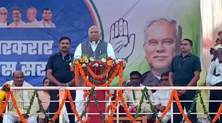 छत्तीसगढ़ में भाजपा शासनकाल में आदिवासियों, गरीबों और दलितों का जो शोषण होता रहा है उन्हें मौका देंगे तो फिर यह शोषण होगा। श्री खडग़े ने कहा कि सबको शिक्षा, समानता देने का काम कांगे्रस ने किया है। यहां जो उद्योग है, इंडस्ट्री है वह सब कांगे्रस ने बनाया है। बड़े बड़े कारखाने कांगे्रस ने बनाए। जो हमने बनाया उसे बचाने के बजाए हड़पने का काम बीजेपी कर रही है। प्रदेश अध्यक्ष दीपक बैज ने कहा कि 15 साल तक छत्तीसगढ़ को लूटने, युवाओं को ठगने और माता बहनों को छलने का काम भारतीय जनता पार्टी ने किया है।