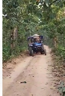 घने जंगल से चोर ट्रैक्टर में रेत भरकर उसको जहां-तहां खपाते हैं , लगता है चोरों की यह हरकत जंगली हाथियों को भी नागवार गुजर रही है , तभी तो रेत भरे ट्रैक्टर के पीछे एक हाथी पड़ गया , हाथी देख ट्रैक्टर चालक छोड़कर भाग निकला।