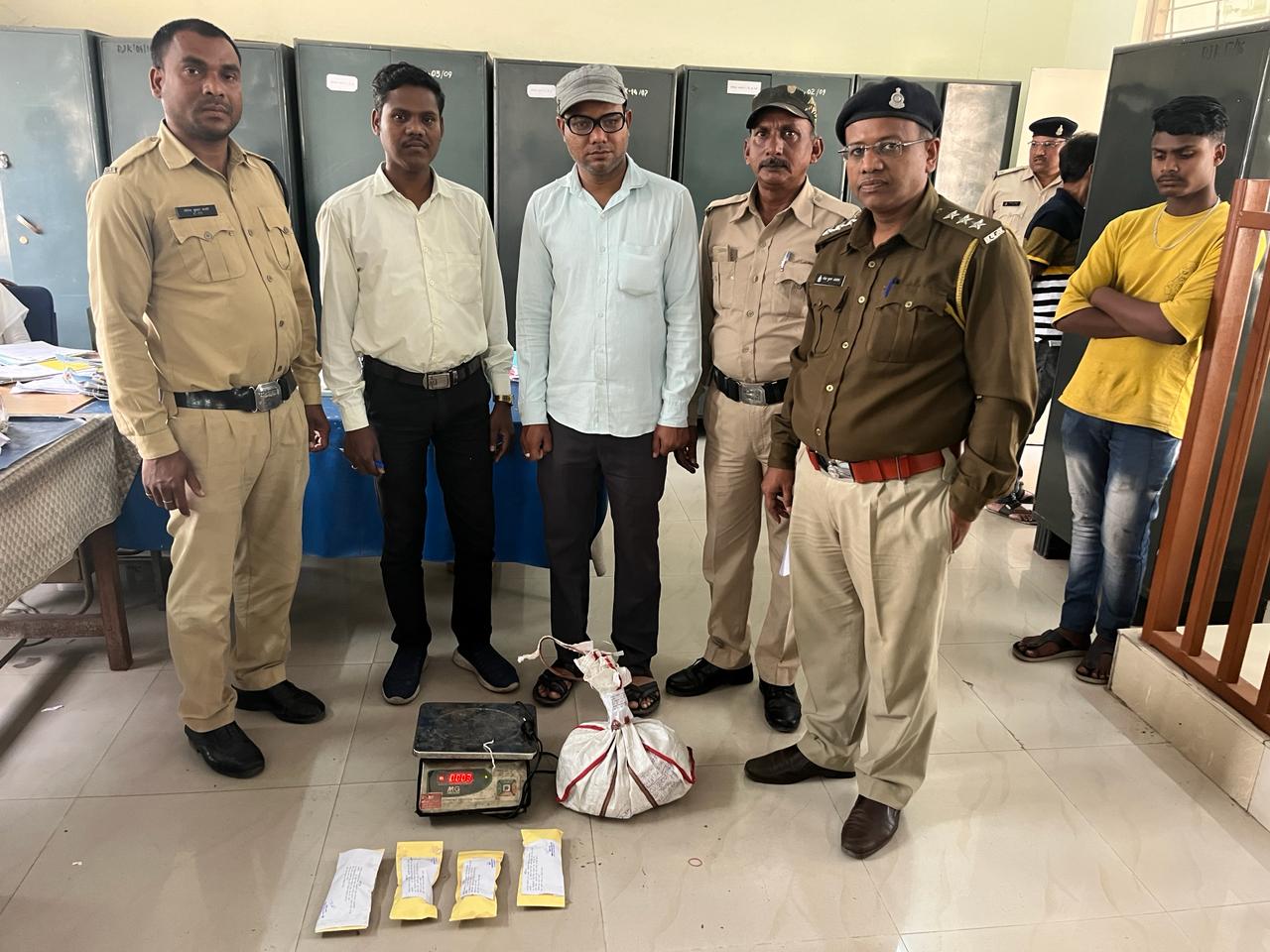 श्री अग्रवाल की टीम ने मुखबीर के बताये अनुसार गोढ़ी नकटीखार पाईप लाईन मार्ग पर नाकाबंदी की जिसमें मोटर सायकल एच.एफ. डिलक्स सी.जी. 12 बी.एफ.-7152 पर दो व्यक्ति एक बैग साथ में रखे हुये आते दिखाई दिये, मौके पर दोनों को रोका गया उनके बैग की तलाशी में 1-1 किलो की दो थैलियों में भरा हुआ गांजा बरामद हुआ।