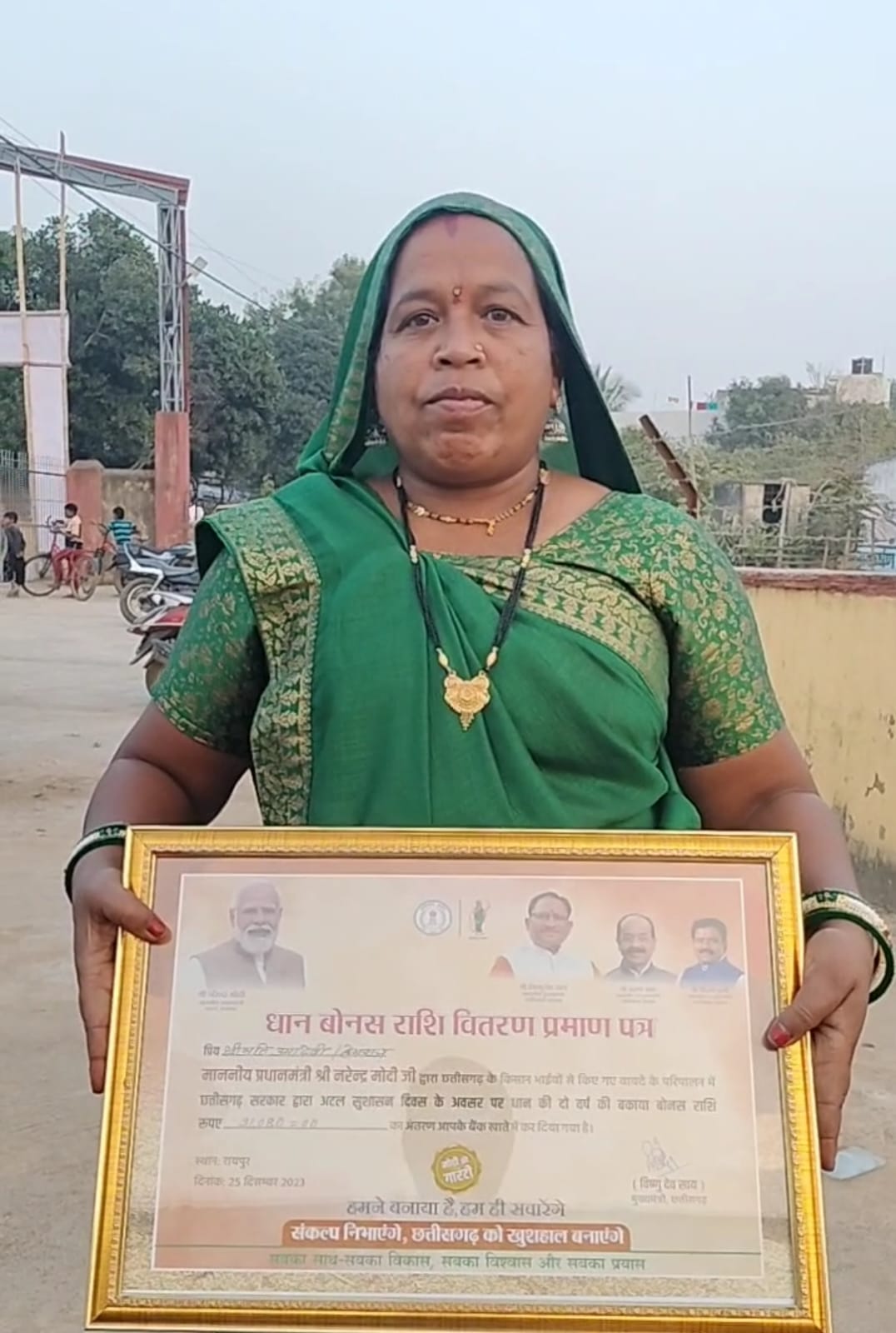 कोरबा/ राज्य शासन द्वारा किसानों के हित को ध्यान में रखते हुए वर्ष 2014-15 एवं 2015-16 के धान खरीदी का बकाया बोनस राशि एकमुश्त प्रदान कर किसानों को खुशियों की सौगात दी है। एक साथ दो वर्ष की बकाया बोनस राशि प्राप्त होने से कृषक वर्ग में उत्साह की लहर व्याप्त है। उनके चेहरे पर प्रसन्नता व होठों पर मुस्कान छाई है। प्रदेश के अन्य जिलों की भांति कोरबा जिले के किसानों के जीवन में भी बोनस राशि मिलने से खुशहाली आई है। जिले के किसानों ने प्रदेश में नए सरकार के गठन होने के साथ ही लंबित बोनस मिलने पर प्रधानमंत्री श्री नरेंद्र मोदी एवं प्रदेश के मुखिया श्री विष्णु देव साय के प्रति आभार व्यक्त किया है।