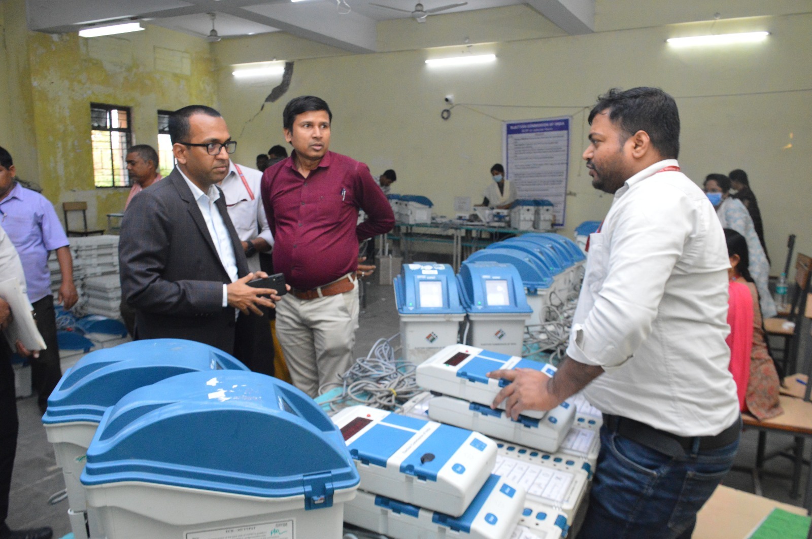 उन्होंने प्रथम स्तरीय जांच कार्य में लगे इंजीनियरों एवं कर्मचारियों से जांच प्रक्रिया की पारदर्शिता के संबंध में जानकारी ली। उन्होंने ईव्हीएम, व्हीव्हीपैट, बैलेट यूनिट, कंट्रोल यूनिट की एफएलसी की पूरी प्रक्रिया का जायजा लिया। साथ ही स्ट्रांग रूम सहित अन्य कक्षों का निरीक्षण कर व्यवस्थाओं की जानकारी ली।