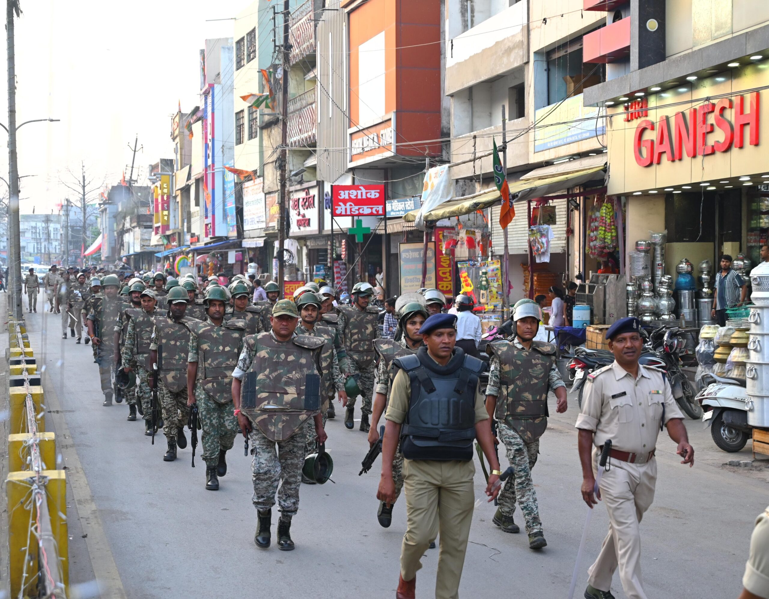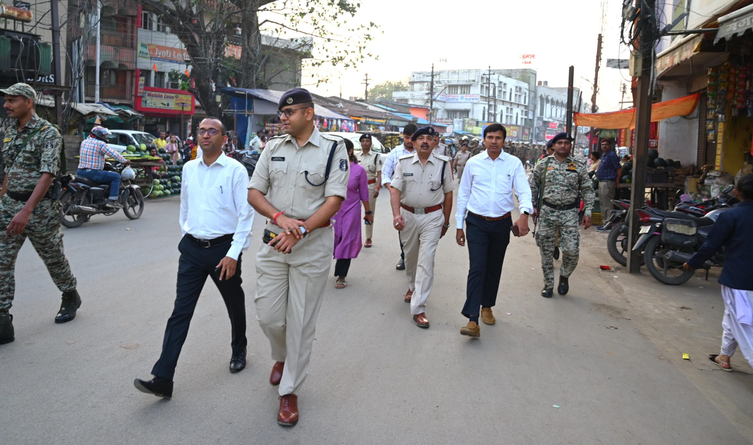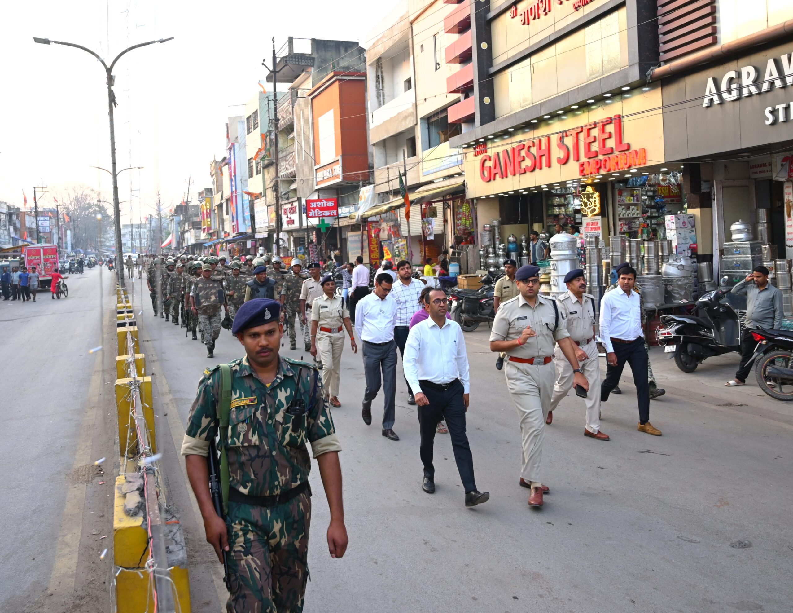 कोरबा शहर में हुए फ्लैग मार्च में कलेक्टर एवं जिला दंडाधिकारी श्री अजीत बसंत, पुलिस अधीक्षक श्री सिद्धार्थ तिवारी, अतिरिक्त जिला दंडाधिकारी नाग, अतिरिक्त पुलिस अधीक्षक यू.बी.एस. चौहान, श्रीमती नेहा वर्मा, एसडीएम श्रीकांत वर्मा, नगर पुलिस अधीक्षक कोरबा भूषण एक्का, नगर पुलिस अधीक्षक दर्री रविन्द्र मीना, हेडक्वार्टर डीएसपी श्रीमती प्रतिभा मरकाम तथा अन्य अधिकारी कर्मचारियों के साथ पुलिस व प्रशासन की टीम व सुरक्षा बलों नेछ शहर के विभिन्न चौक-चौराहों में पैदल फ्लैग मार्च किया गया।