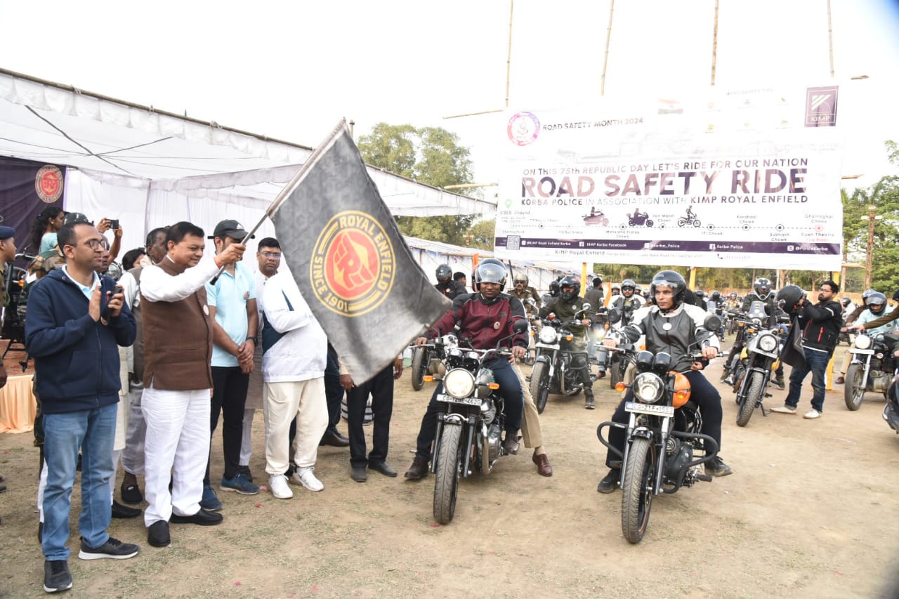कोरबा( न्यूज उड़ान ) 35वां राष्ट्रीय सड़क सुरक्षा माह अंतर्गत आज बाइक रैली के माध्यम से आमनागरिको को यातायात नियमों का सड़क पर पालन करने जागरूक किया गया। पुलिस प्रशासन द्वारा आयोजित जागरूकता कार्यक्रम में छत्तीसगढ़ शासन के वाणिज्य,उद्योग और श्रम मंत्री श्री लखनलाल देवांगन मुख्य अतिथि के रूप में सम्मिलित हुए और उन्होंने बाइक जागरूकता रैली को झंडी दिखाकर रवाना किया।