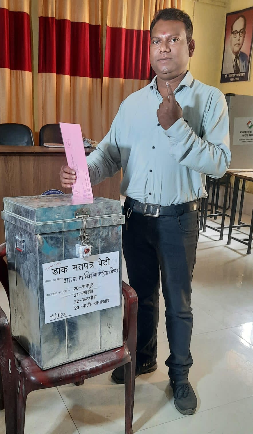 कोरबा ऐसे अधिकारी-कर्मचारी जो कि कोरबा जिले के निवासी हैं और कोरबा जिले से बाहर कार्यरत् हैं तथा जिनकी मतदान कार्यों में ड्यूटी लगाई गई है एवं जिन्होंने जिला निर्वाचन अधिकारी के माध्यम से डाक मतपत्र हेतु आवेदन किया है, उन्होंने आज प्रशिक्षण स्थल पर डाकमत पत्र से मतदान किया। शासकीय इव्ही पी जी कॉलेज कोरबा में रायगढ़ से मतदान करने आए श्री प्रमोद जांगड़े, जांजगीर-चाम्पा जिले से मतदान करने आई संगीता यादव और कोरबा जिले में वाहन चालक प्यारेलाल यादव ने बताया कि आज उन्होंने डाकमत पत्र से मतदान किया।
