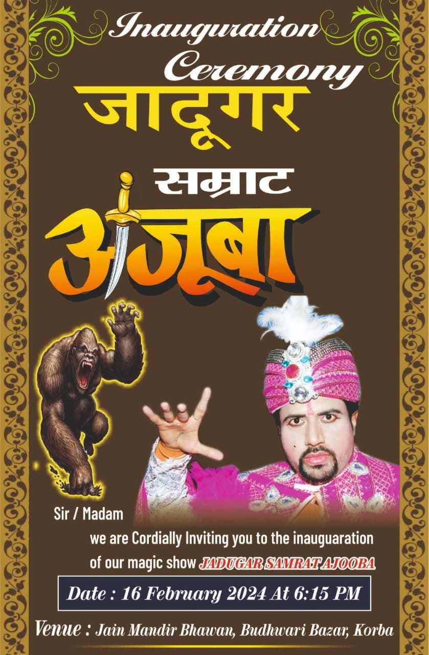 : ऊर्जाधानी कोरबा के जैन मंदिर परिसर भवन में जादूगर सम्राट अजूबा के शो का भव्य शुभारंभ