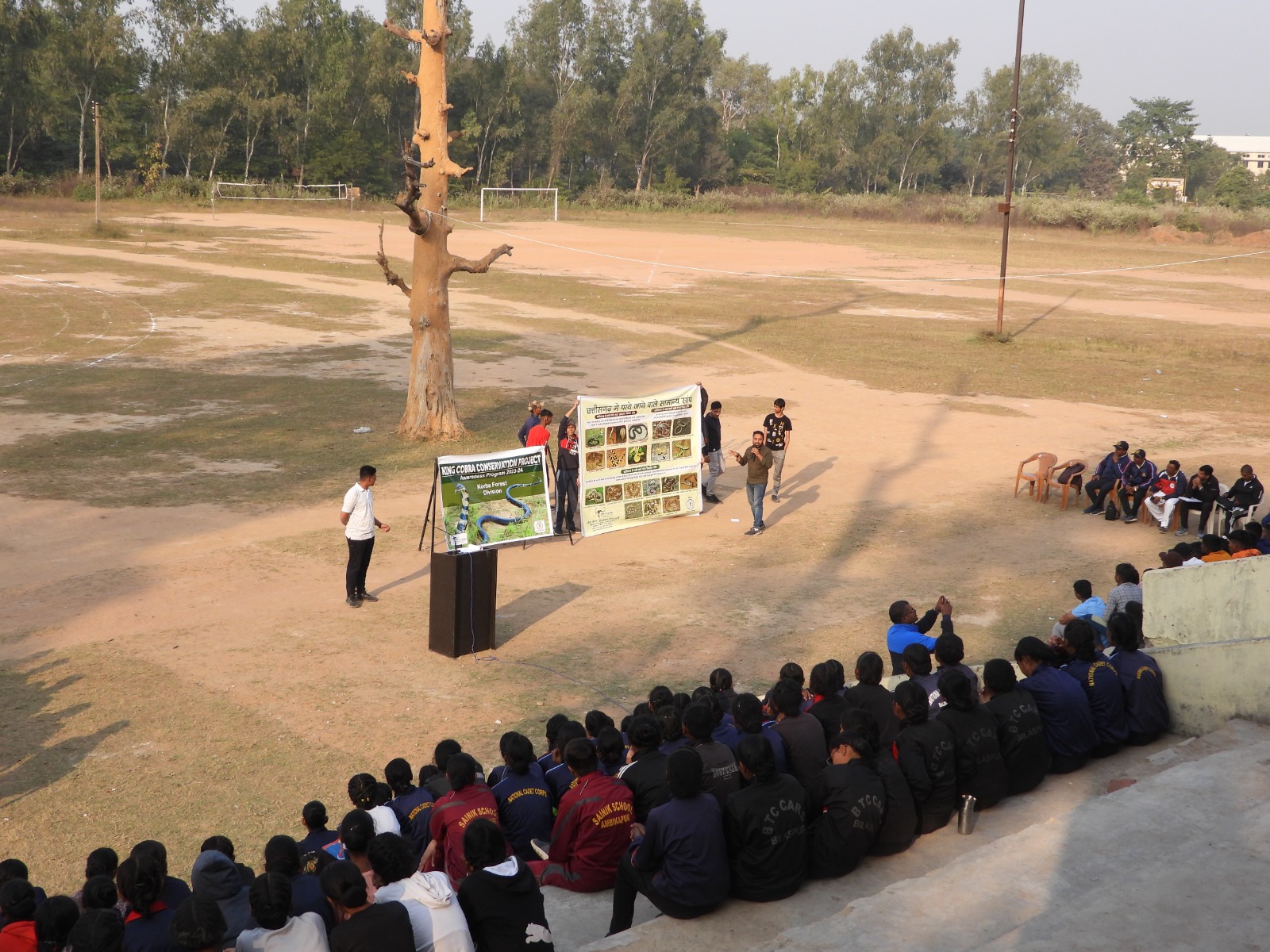 सांपों के विषय में टीम ने बताया कोरबा जिला मध्य भारत में किंग कोबरा के लिए जाना जाता हैं और ऐसे दुर्लभ और विलुप्त प्रायः जीव को बचाना और संवर्धन करना अत्यधिक जरूरी हैं।