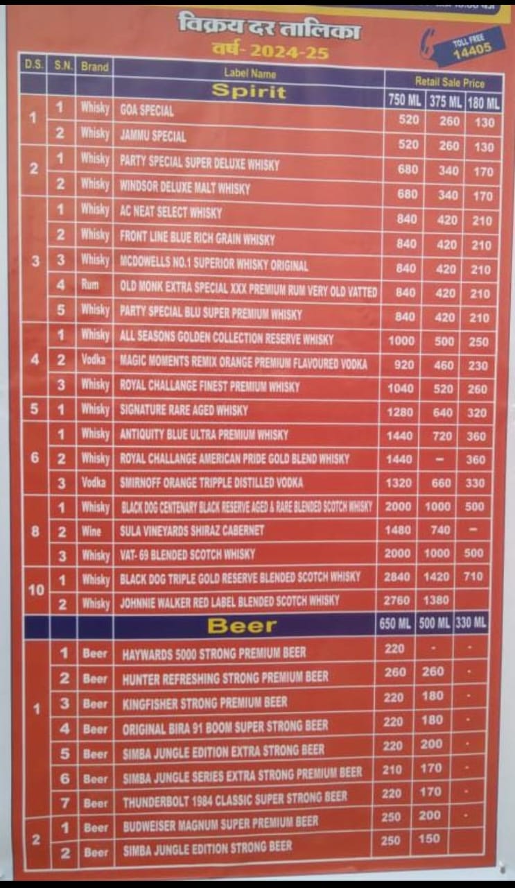 विदेशी मदिरा के कई प्रचलित ब्रांड लेबल्स का मूल्य जारी होना शेष रहने के कारण मूल्य जारी होने तक दुकानों में संग्रहित ऐसी मदिरा का विक्रय प्रतिबंधित रहेगा।