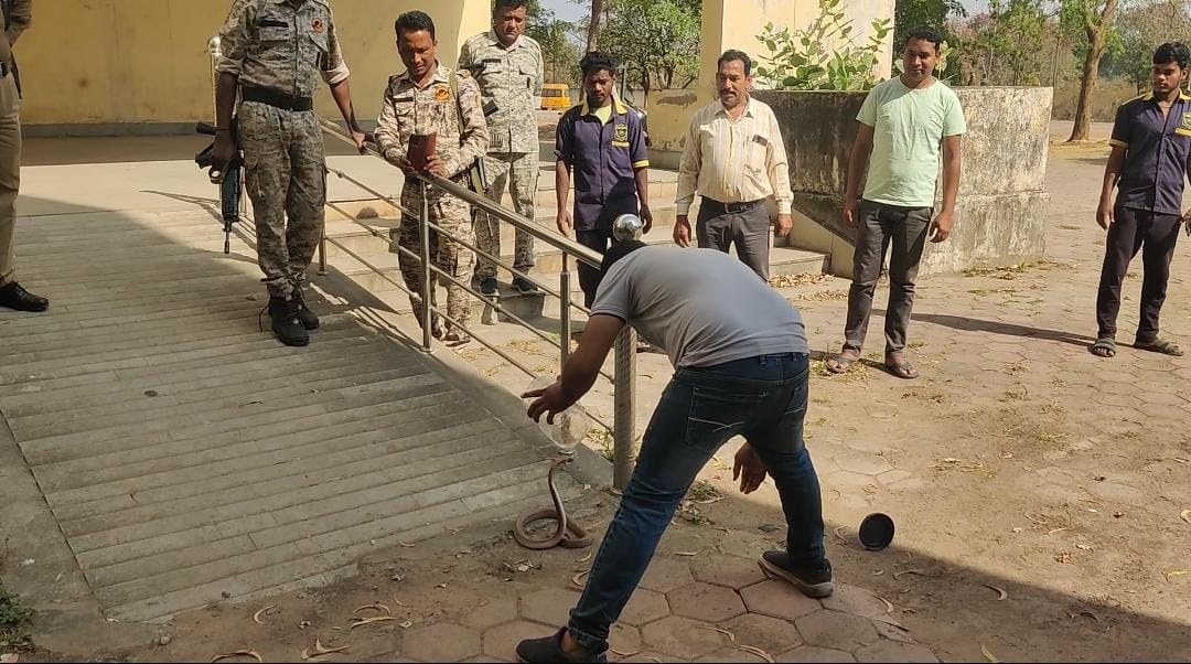 जिसके बाद जितेंद्र सारथी मौके पर पहुंचे और गुस्सैल कोबरा को सुरक्षित रेस्क्यू कर लिया तब जाकर सभी ने राहत भरी सास लिया फिर उसे सुरक्षित जंगल में छोड़ दिया गया।