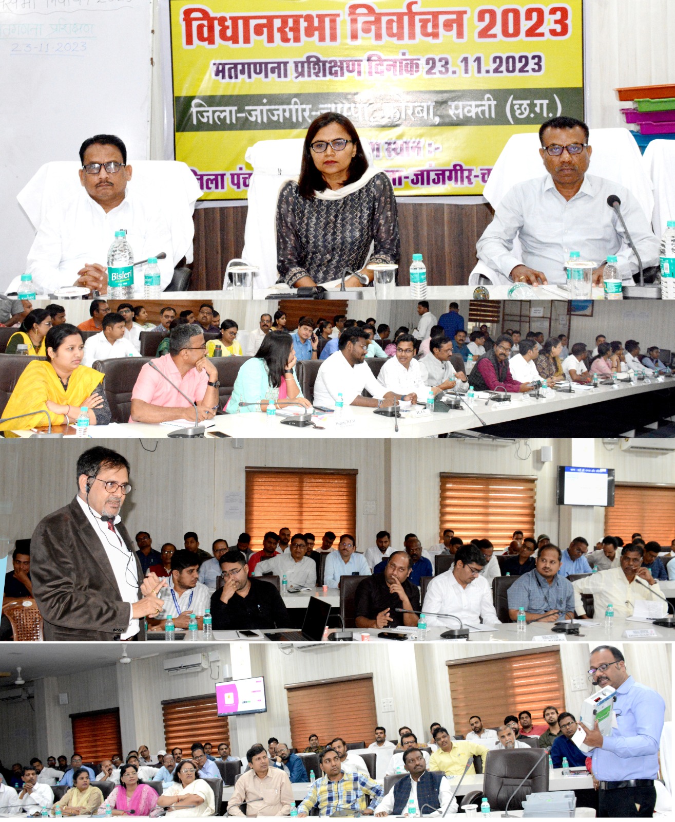 प्रशिक्षण में भारत निर्वाचन आयोग के निर्देशानुसार नियमों का पालन करते हुए मतगणना कार्य संपन्न कराने के लिए सभी आवश्यक बिन्दुओं की विस्तार से जानकारी दी गई। विधानसभा निर्वाचन 2023 के अंतर्गत मतगणना कार्य 03 दिसम्बर 2023 को आईटी कॉलेज कोरबा में किया जाएगा।