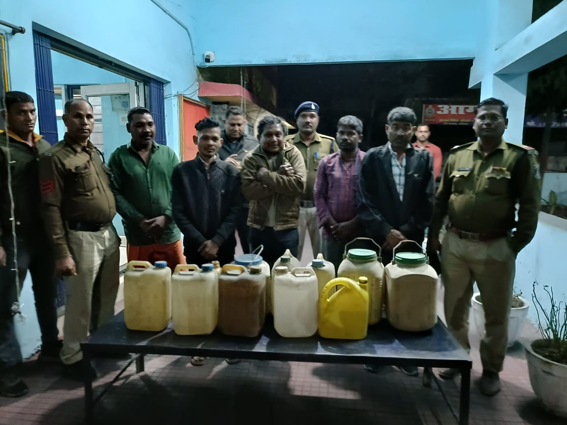 पुलिस टीम की कार्यवाही में मिले 25 व्यक्ति, कुल 323 लीटर महुआ शराब जप्ती की गई है।