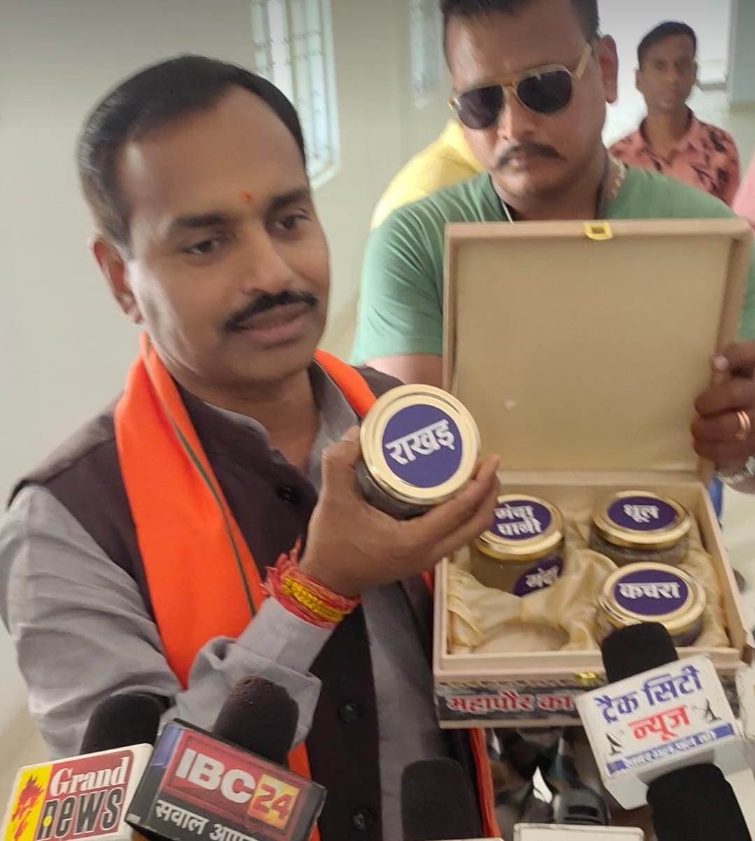 शहर के महापौर राजकिशोर प्रसाद को नेता प्रतिपक्ष हितानंद अग्रवाल ने जादुई पिटारा दिया। जिसकी चर्चा कुछ समय से शहर में हो रही थी। इस जादुई पिटारे में गंदा पानी, राखड़, बजरी और कचरा था।