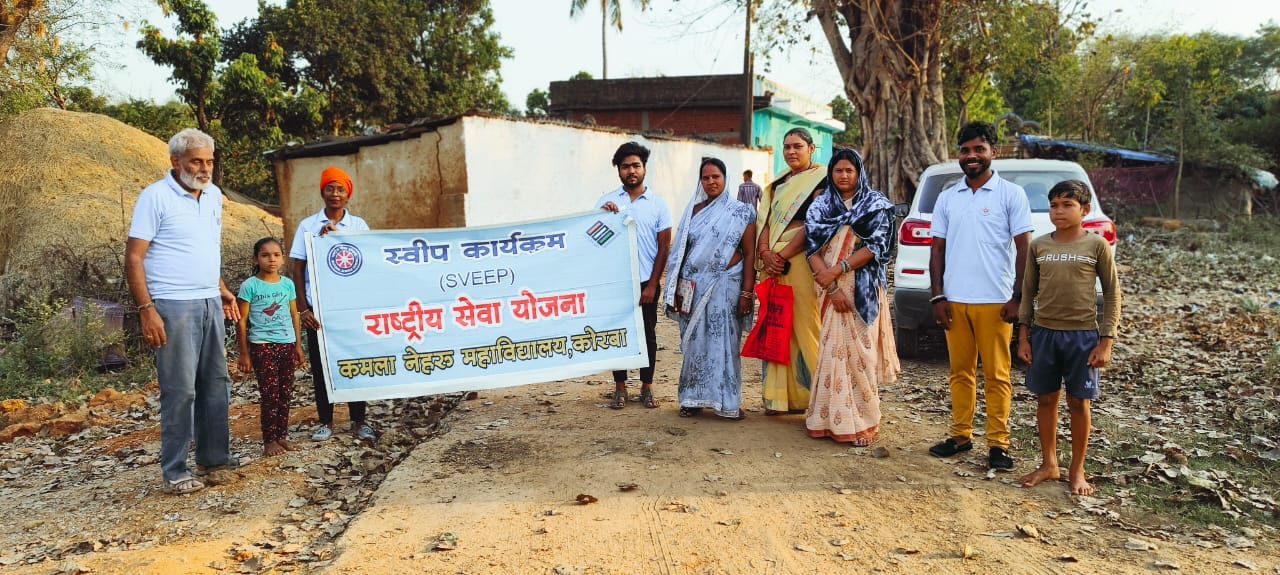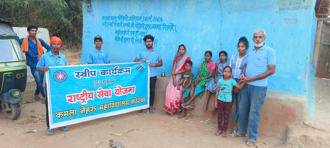 कोरबा( न्यूज उड़ान) कलेक्टर एवं जिला निर्वाचन अधिकारी श्री अजीत बसंत, जिला पंचायत सीईओ एवं स्वीप नोडल अधिकारी श्री संबित मिश्रा के मार्गदर्शन में कमला नेहरू महाविद्यालय कोरबा की राष्ट्रीय सेवा योजना इकाई के द्वारा चयनित गोद ग्राम भादा में मतदाताओं को नई तकनीक की जानकारी देते हुए उनकी सहभागिता व जागरूकता बढ़ाने संपर्क अभियान चलाया गया।