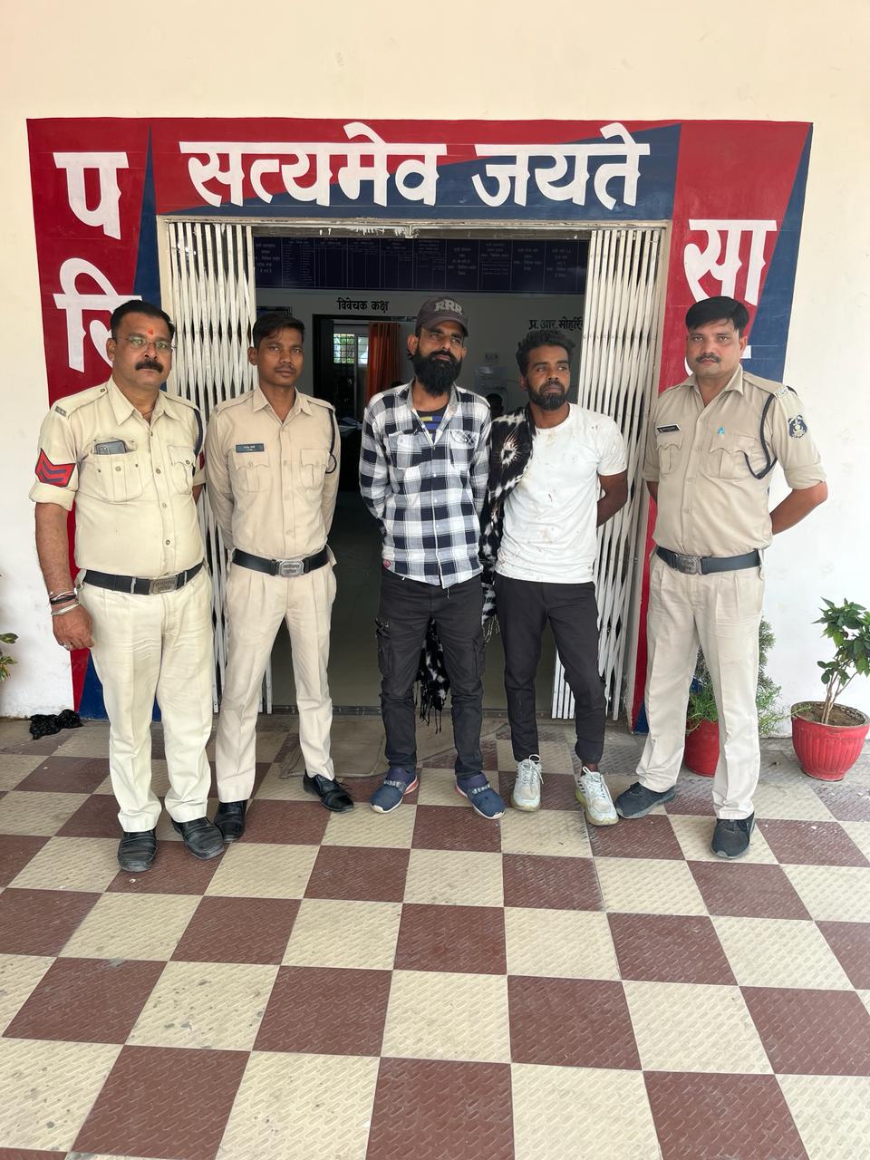 पुलिस द्वारा मुखबिर सूचना पर देशी शराब दुकान रामपुर के पास दो व्यक्ति नशे कि हालत मे है तथा उनके पास एक पिस्टलनुमा हथियार रखे है कि सूचना पर सायबर सेल कोरबा तथा थाना सिविल लाईन रामपुर की संयुक्त टीम बनाकर सूचना तस्दीक हेतु रवाना होकर घेराबंदी कर रेड कार्यवाही किया गया। मौके पर आरोपी मनोज यादव उर्फ भतखऊआ पिता स्व. श्यामरथ यादव उम्र 28 वर्ष निवासी सिंचाई कालोनी थाना सिविल लाईन रामपुर जिला- कोरबा तथा दिनेश सोनी पिता स्व. नेतालाल सोनी उम्र 37 वर्ष साकिन भदरापारा थाना बालको नगर कोरबा जिला कोरबा मिले। जोकि पूर्व मे गंभीर अपराधों के आरोपी है जिसमे आरोपी मनोज यादव उर्फ भतखऊआ चौकी मानिकपुर के हत्या के मामले मे आजीवन कारावास का सजायाप्ति है जो कि बिलासपुर सेंट्रल जेल से जमानत पर है। जिनके कब्जे से 01 नग लोहे का पिस्टलनुमा 7.65 एमएम का देशी हथियार तथा 04 नग जिंदा कारतूस मिला। जिसके संबंध मे आरोपियों का कृत्य उपरोक्त अपराध धारा सदर का सबुत पाये जाने से आरोपी के विरूद्ध अपराध क्रमांक 216/2024 धारा 25 आर्मस एक्ट के तहत गिरफ्तार कर न्यायिक रिमाण्ड पर भेजा जा रहा है।