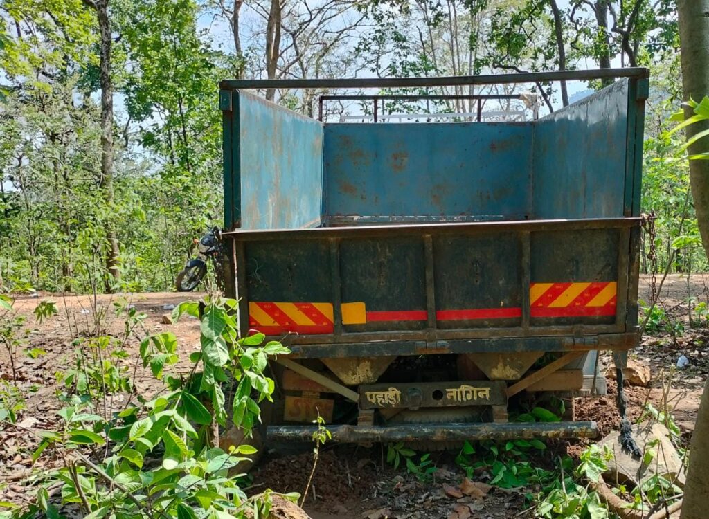 : <em>घटनास्थल पर मिला माजदा वाहन। वाहन को जप्त कर बालको पुलिस जुटी जांच में।</em>