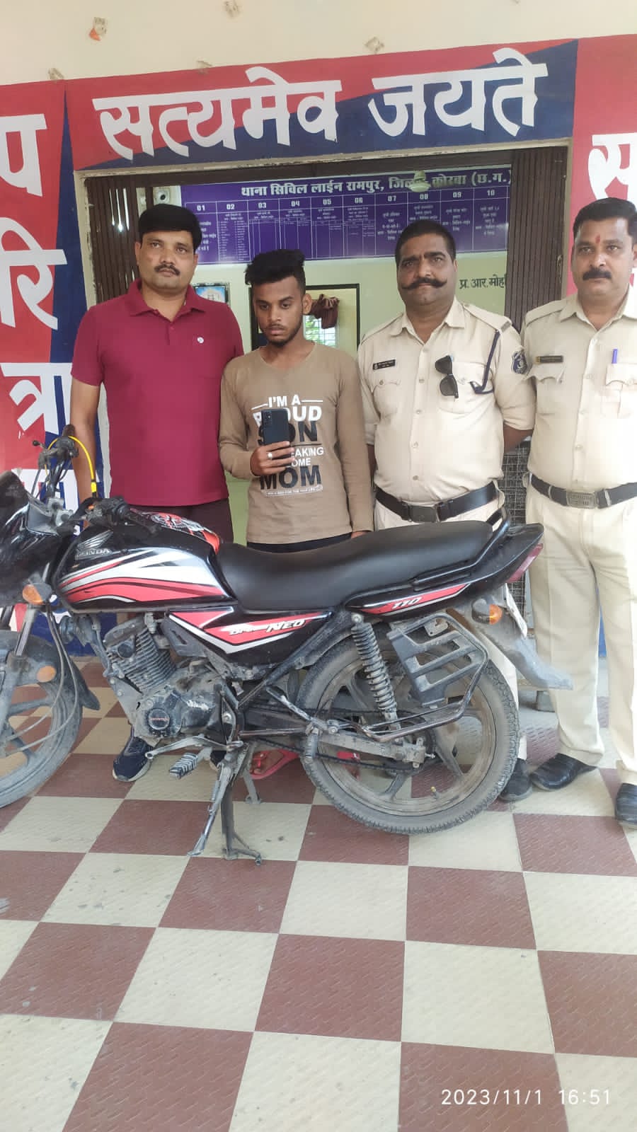 मामले का संक्षिप्त विवरण इस प्रकार है कि प्रार्थिया आषा चौहान पिता मनीराम चौहान उम्र 23 साल पता-पोड़ीबहार ने थाना उपस्थित आकर रिपोर्ट दर्ज कराया कि दिनांक 28.10.2023 को दोपहर कोसाबाडी नेक्सा शोरूम से पैदल पैदल अपने मोबाईल फोन से बात करते हुए पोडीबहार अपने घर जा रही थी। नेक्सा शोरूम से थोड़ी दूर आगे पहुंची थी तभी मोटर सायकल सवार एक अज्ञात चोर पीछे से प्रार्थिया केे पास आकर उसके दाहिना हाथ से मोबाईल फोन को झटककर भाग गया। प्रार्थिया की रिपोर्ट पर थाना सिविल लाईन रामपुर में अपराध पंजीबद्ध कर विवेचना में लिया गया। विवेचना के दौरान घटना स्थल के आसपास लगे हुए सीसीटीवी फुटेज को खंगाला गया। जिसमें एक व्यक्ति मो.सा. से लूट करते हुए चेहरा दिखाया दिया। जिसके आधार पर आरोपी की खोजबीन पता तलाष की जा रही थी। इस दौरान मुखबीर से सूचना मिली कि घटना दिनांक को स्टॉफ नर्स से लूट करने वाला आरोपी रामसागरपारा का है। जिसके बाद पुलिस की एक टीम बनाकर घेराबंदी कर लूट के आरोपी को पकड़ लिया गया। जिसका नाम सलमान खान पिता नफीस खान उम्र 19 साल पता-रामसागरपारा वार्ड क्रमांक 01, थाना कोतवाली कोरबा का रहने वाला बताया एवं जुर्म करना स्वीकार किया। आरोपी से मोबाइल सैमसंग ग्लैक्सी एफ 23 5जी एवं घटना में प्रयुक्त एक मोटर सायकल सीजी 12 एआर 0438 को जप्त कर लिया गया है। आरोपी को नायक रिमांड पर भेजा गया है। इस महत्वपूर्ण कार्यवाही में श्रीमान पुलिस अधीक्षक महोदय कोरबा एवं अतिरिक्त पुलिस अधीक्षक महोदय कोरबा के निर्देषन में एवं नगर पुलिस अधीक्षक कोरबा के मार्गदर्षन में निरीक्षक मृत्युंजय पांडेय थाना प्रभारी सिविल लाईन रामपुर, सउनि राकेष गुप्ता, आरक्षक संदीप भगत सायबर सेल से प्रधान आरक्षक चंद्रशेखर पांडे, गुनाराम सिंहा, आरक्षक सुशील यादव, रवि चौबे, आलोक टोप्पो, रितेश शर्मा की महत्वपूर्ण भूमिका रही।