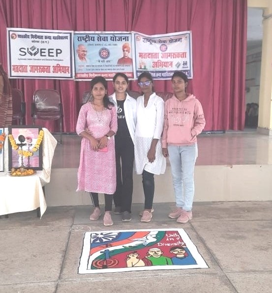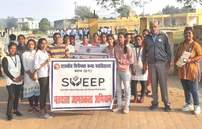 शासकीय मिनीमाता कन्या महाविद्यालय कोरबा में नुक्कड नाटक, रैली, शपथ जैसी गतिविधियों का आयोजन किया गया। कार्यक्रम में विद्यार्थियों द्वारा जागरूकता रैली के माध्यम से लोगांे को जागरूक करते हुए लोकतंत्र के त्यौहार में बढ़चढ़ कर हिस्सा लेने व सभी को मतदान करने हेतु आग्रह किया गया एवं छात्र-छात्राओं को शत-प्रतिशत् मतदान करने शपथ दिलाई गई।