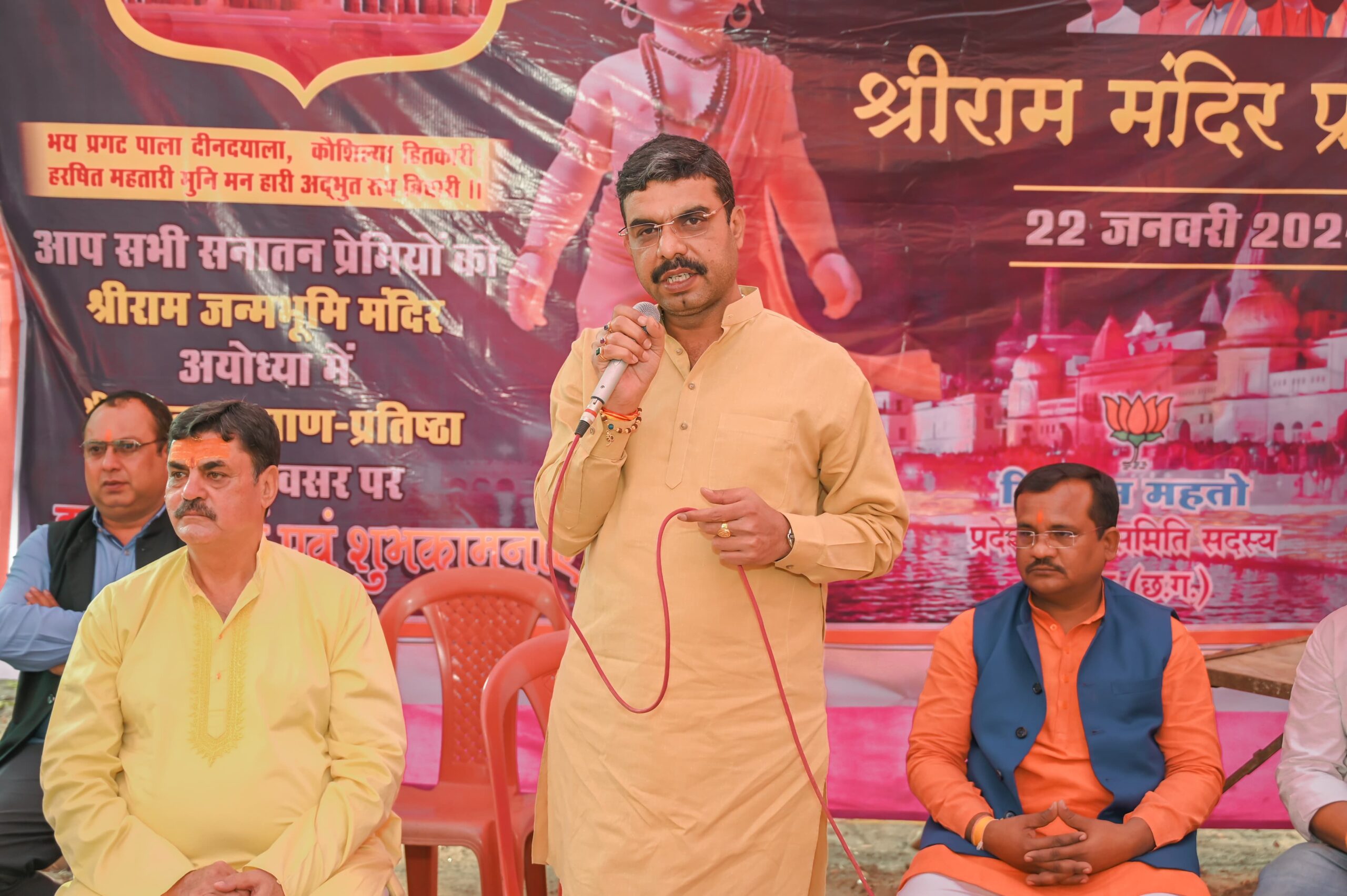 भाजपा प्रदेश कार्य समिति सदस्य श्री विकास महतो ने अपने उद्बोधन में कहा कि हम उस ऐतिहासिक पल के साक्षी बन रहे हैं जिसके लिए हमारी कई पीढ़ियां खप गई ।