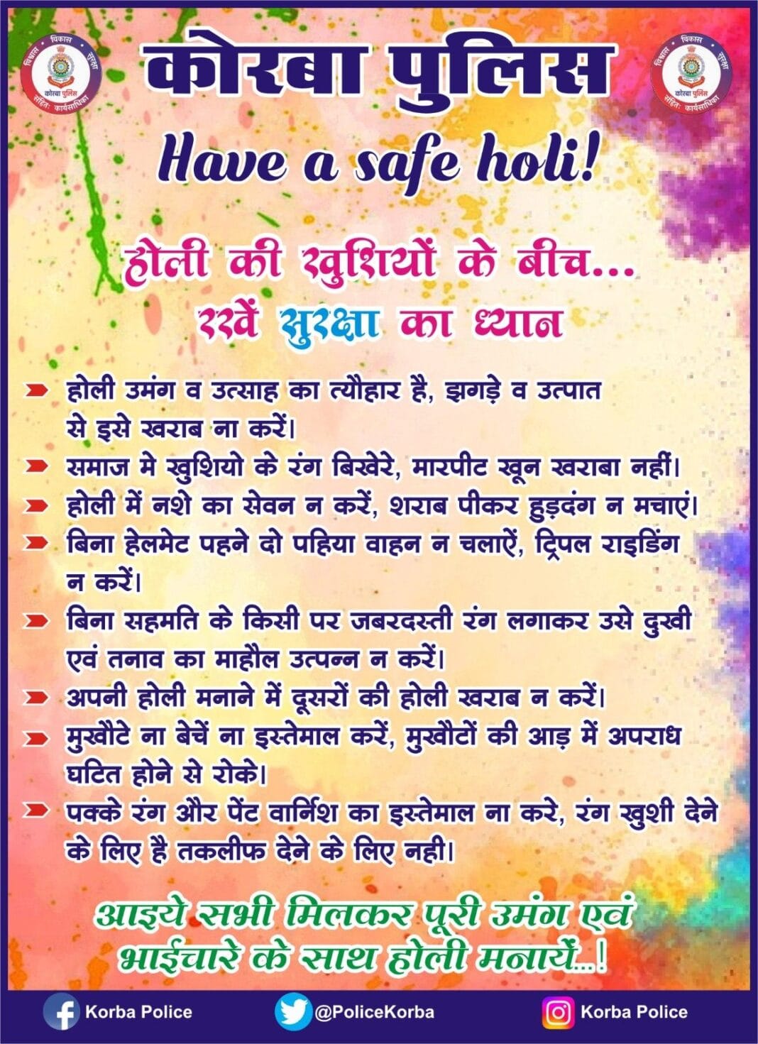 : कोरबा पुलिस के सोशल मीडिया साइट फेसबुक, टि्वटर, इंस्टाग्राम के माध्यम से भी किया जा रहा है लोगों को जागरूक
