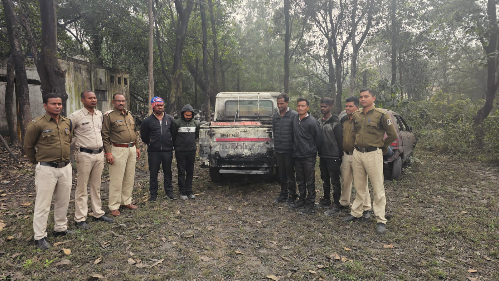 जिसे मौके पर ही पकडे जिनसे नाम पूछने पर अपना नाम 01. नवीन पिता भुनेश्वर सिंह उम्र 21 वर्ष, 02. दिलीप सिंह पिता लक्ष्मण सिंह 32 वर्ष, 03. किरन कुमार यादव पिता स्व० लालाराम 28 वर्ष, 04. अजय कुमार पिता आधार साय उम्र 30 वर्ष, 05. सूरज कुमार पिता रोहित कुमार उम्र 24 वर्ष बताया गया।