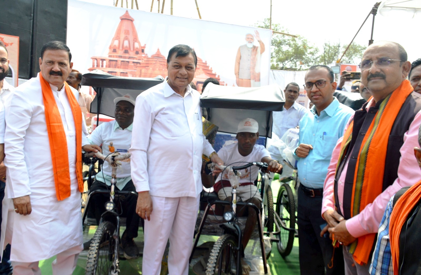 लक्ष्मी प्रसाद निषाद व चमरा दास महंत को मोटराइज्ड ट्राइसायकल प्रदान किया गया। खाद्य विभाग के अंतर्गत श्रीमती श्वेता झा, रेखा देवी, शीला टंडन, श्रद्धा पात्रे, व निशा साह को प्रधानमंत्री उज्जवला गैस कनेक्शन एवं ममता ठाकुर, रानी, मेमिन बाई कर्ष, केसर बाई गबेल, जानकी बाई पटेल को राशन कार्ड वितरित किया गया। स्वास्थ्य विभाग द्वारा कृषनी देवांगन, बबिता साहू, दीप माला यादव, संतोषी साहू, सालिक केशरवानी, भावना राठौर, अपर्णा राठौर, लक्ष्मी राठौर, भगवती यादव को आयुष्मान कार्ड प्रदान किया गया। प्रमिला बाई, तुलसी बाई को मुख्यमंत्री नोनी सशक्तिकरण सहायता योजना, श्यामला मंझवार, कुमारी बाई को मिनीमाता महतारी जतन, बिसुन लाल, श्याम बाई राठिया को मुख्यमंत्री निर्माण श्रमिक मृत्यु व दिव्यांग सहायता योजना, नाजिया, झालो देवी, मीना मानिकपुरी को पीएम स्वनिधि योजना एवं मेघा साहू, सरिता साहू, दुर्गा साहू, पूर्णिमा साहू, आंनद बाई यादव, रामेश्वरी साहू, काजल साहू, प्रीति साहू, रीता साहू, भूमिका यादव को पीएम विश्वकर्मा योजना के तहत प्रशिक्षण उपरांत प्रमाण पत्र प्रदान किया गया।