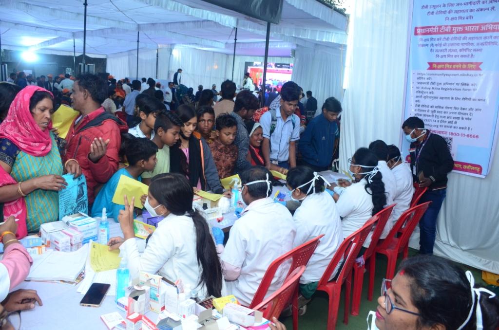 अधिकारी-कर्मचारी एवं बड़ी संख्या में आम नागरिक उपस्थित थे। शिविर में केंद्र सरकार की विभिन्न योजनाओं से हितग्राहियों को लाभ पहुंचाने एवं जानकारी देने हेतु विभागों द्वारा स्टॉल लगाया गया। जहां पर पात्र हितग्राहियों को योजनाओं का लाभ दिया गया एवं जरूरतमंद लोगों को आवेदन फार्म भरवाए गए। विधायक श्री देवांगन सहित सभी अधिकारियों एवं जनप्रतिनिधियों ने विभागीय स्टॉल का अवलोकन किया और शासन की योजनाओं के तहत लाभार्थियों की जानकारी ली। उन्होंने विभिन्न योजनाओं के तहत