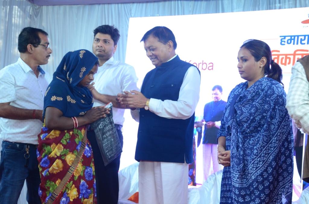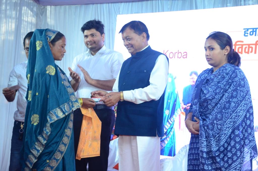 जिसमें श्रीमती आरती प्रजापति, श्री भवानी प्रधान, श्रीमती सकिना, श्रीमती राधा बाई गोस्वामी एवं श्रीमती ममता साहू शामिल हैं। इसी प्रकार आयुष्मान कार्ड के 4 हितग्राहियों श्री किशोर कश्यप, श्रीमती दिलबाई मंझवार, श्री रामलाल विश्वकर्मा तथा श्री महेंद्र सिंह को कार्ड प्रदान किया गया एवं समाज कल्याण विभाग द्वारा दो हितग्राहियों को व्हील चेयर वितरण किया गया। जिनमें उत्तम कुमार व रित्विक शामिल है। विधायक श्री देवांगन द्वारा उनके परिजनों को व्हील चेयर प्रदान किया गया। इस अवसर पर कई हितग्राहियों को प्रमाण पत्र और सामग्री वितरण किया गया। मेरी कहानी मेरी जुबानी अंतर्गत पीएम आवास, आयुष्मान कार्ड सहित अन्य योजनाओं के हितग्राहियों ने अपने अनुभव सुनाए। साथ ही शिविर में स्वास्थ्य