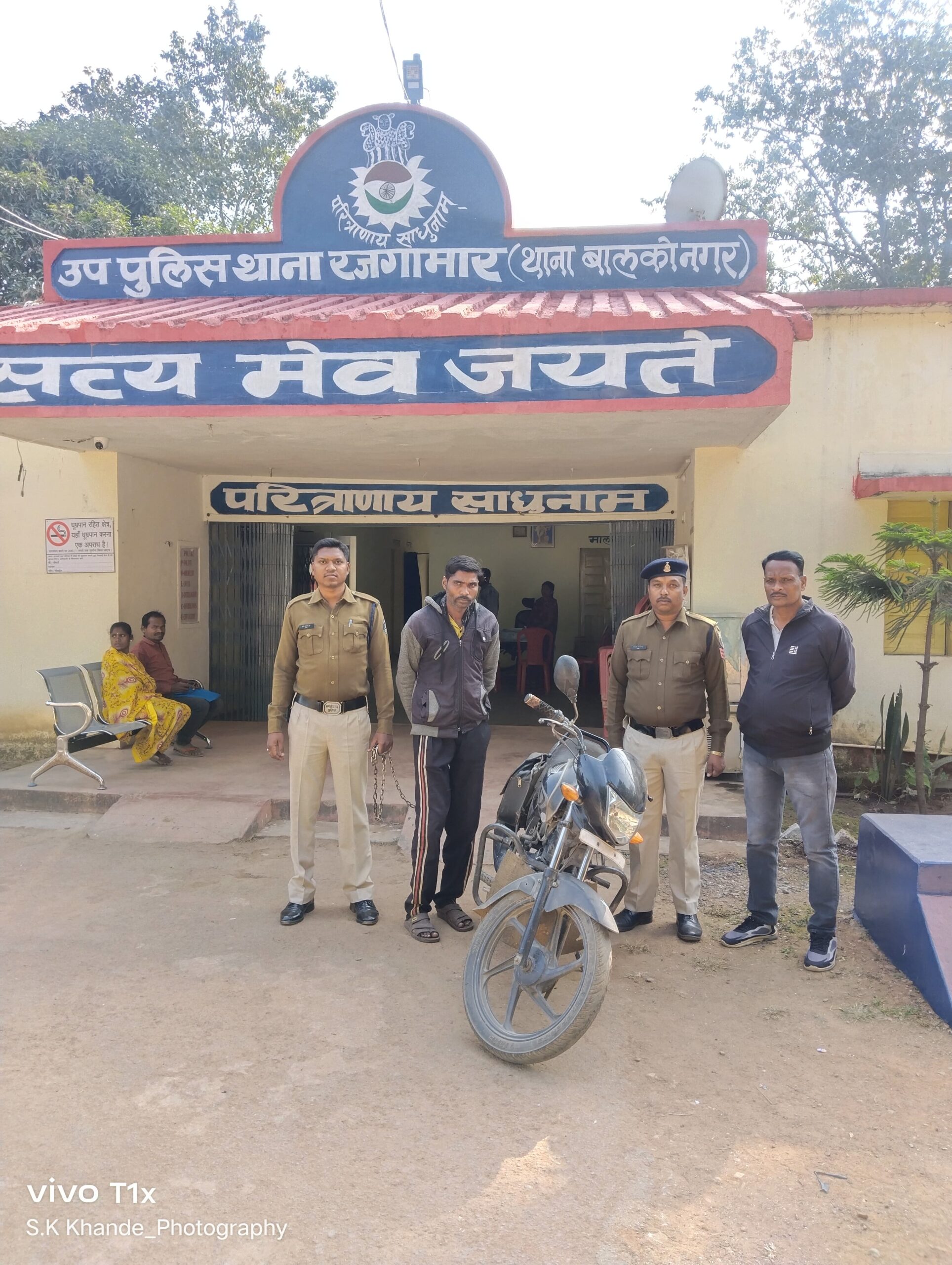 कोरबा। श्रीमान पुलिस अधीक्षक महोदय कोरबा श्री जितेन्द्र शुक्ला के दिशा निर्देश पर अतिरिक्त पुलिस अधीक्षक महोदय श्री अभिषेक वर्मा, नगर पुलिस अधीक्षक महोदय श्री भूषण एक्का एवं थाना प्रभारी बालको श्री अविनाश कंवर, के मार्गदर्शन में चौकी प्रभारी रजगामार लक्षमण प्रसाद खुटें हमराह स्टाप प्रधान आरक्षक 174 गुरूवार सिंह, 353 विनोद कुमार, आरक्षक 721 करण सिंह के नतृत्व में पुलिस चौकी रजगामार चोरी किये गये 1 नग मोटरसाइकिल ड्रिम नियों क्र० सी0जी012 ए0के0 1388 चोरी किये जप्त करने में सफलता प्राप्त हुई है