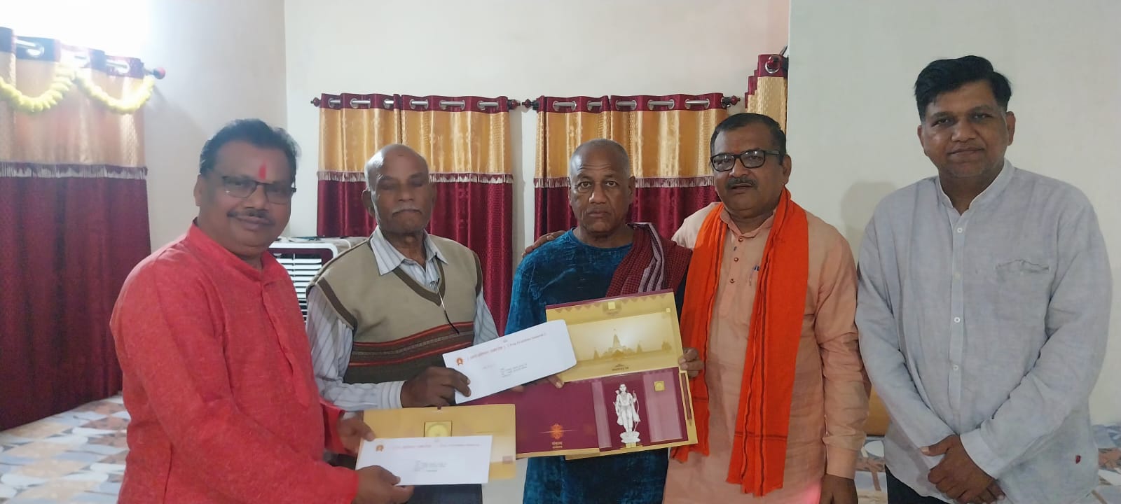 अयोध्या से आए प्राण प्रतिष्ठा का न्योता राष्ट्रीय स्वयंसेवकसंघ धर्म जागरण के प्रांत अधिकारी भोजराम देवांगन, विश्व हिंदू परिषद के मार्गदर्शक विनय मोहन पाराशर, जिला कार्य अध्यक्ष राजेंद्र तारक, जिला मंत्री विजय कुमार राठौर व शैलेश सोमवंशी की उपस्थिति में श्री पाटले को दिया गया।