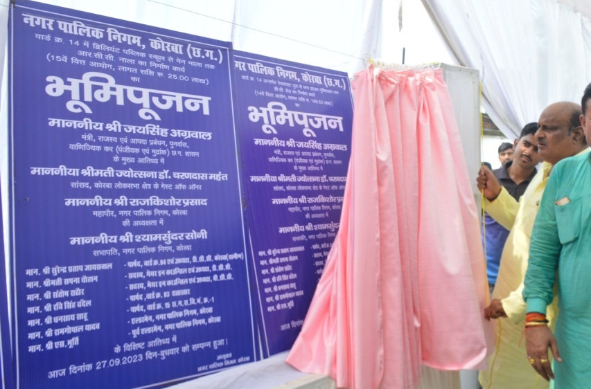 कोरबा छत्तीसगढ़ शासन के राजस्व एवं आपदा प्रबंधन पंजीयन एवं पुनर्वास मंत्री श्री जयसिंह अग्रवाल ने आज कोरबा नगर निगम के वार्ड क्रमांक 14 पंप हॉउस में आवासहीन व्यक्ति को पट्टा वितरण कार्यक्रम का शुभारंभ किया। साथ ही वार्ड क्रमांक 14 में विभिन्न मद अंतर्गत 281.04 लाख रुपए लागत के कुल 11 विकास एवं निर्माण कार्याे का भूमिपूजन किया। राजस्व मंत्री श्री अग्रवाल ने वार्डवासियों को पट्टा वितरण एवं विकास कार्याे के लिए अपनी