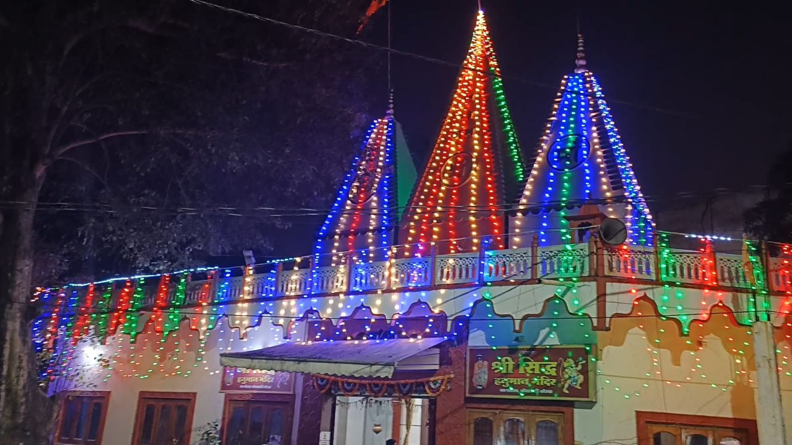 हनुमान मंदिर कोसाबाड़ी तथा कोसाबाड़ी चौक को ध्वज,केसरिया झंडे से सजाया गया है। मंदिर में आज सुबह से भक्ति गीत,भजन गाये जा रहे हैं।