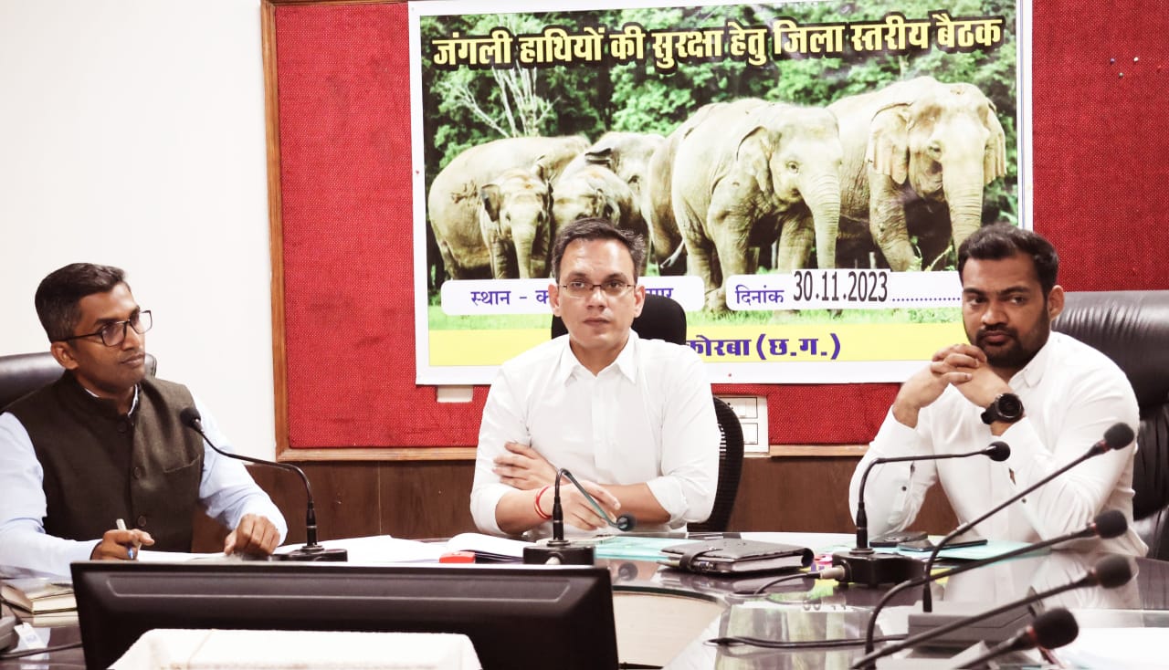 कोरबा कलेक्टर सौरभ कुमार ने आज वन विभाग सहित विद्युत और क्रेडा विभाग के अधिकारियों की बैठक ली। उन्होंने जिले के वनांचल क्षेत्रों में हाथी और मानव द्वंद को कम करने तथा जंगली हाथियों से किसी तरह की जनहानि न हो, इस दिशा में प्रभावी कदम उठाने के निर्देश दिए। कलेक्टर ने हाथियों को रिहायशी क्षेत्रों से दूर भगाने में लगी टीम को अलर्ट रहने और वन्य प्राणियों को नुकसान पहुँचाने वाले विद्युत तारों को दुरुस्त करते हुए निर्धारित ऊँचाई का ध्यान रखने के निर्देश दिए।