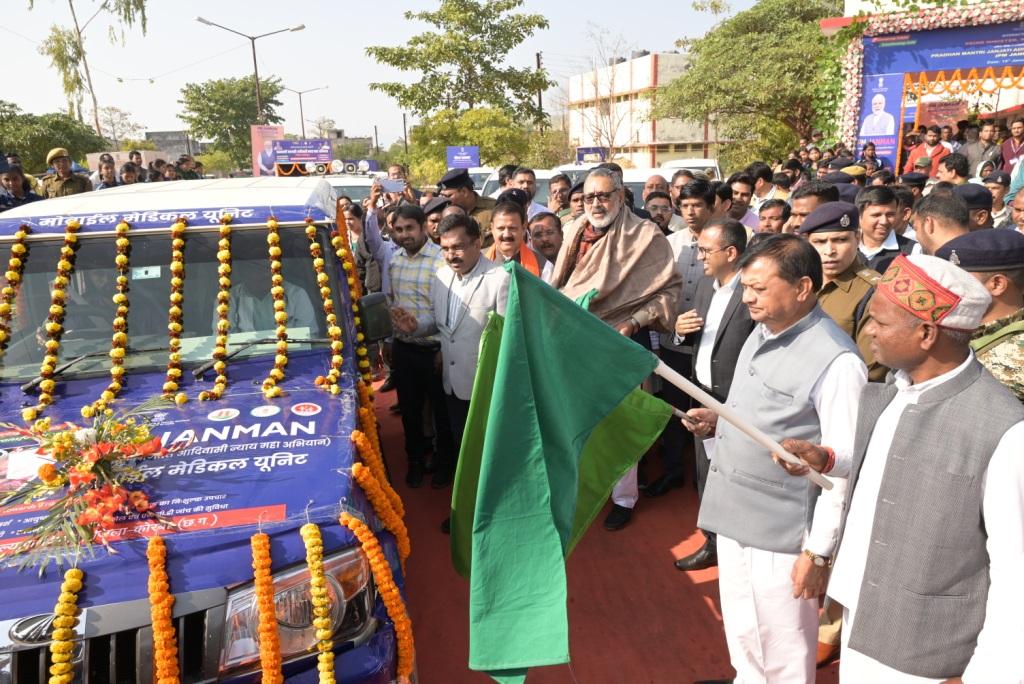 कार्यक्रम के पश्चात अतिथियों द्वारा विभिन्न शासकीय स्टॉलों एवं विद्यालय में बच्चों द्वारा तैयार किए गए आकर्षक मॉडल का अवलोकन किया गया। स्टॉलों में वन विभाग, पंचायत, कृषि, खाद्य, आदिम जाति विकास विभाग, पीएचई, कौशल विकास, स्वास्थ्य विभाग, पशुधन विकास आदि विभागों द्वारा केन्द्रीय योजनाओं का जीवंत और मॉडल के रूप में प्रदर्शित किया गया। केन्द्रीय मंत्री ने स्टॉल अवलोकन के दौरान किए जा रहे कार्यों की सराहना की। इस दौरान केन्द्रीय मंत्री श्री गिरिराज सिंह द्वारा पीएम जनमन अंतर्गत एक मोबाईल मेडिकल यूनिट को हरी झंडी दिखाकर रवाना किया गया।