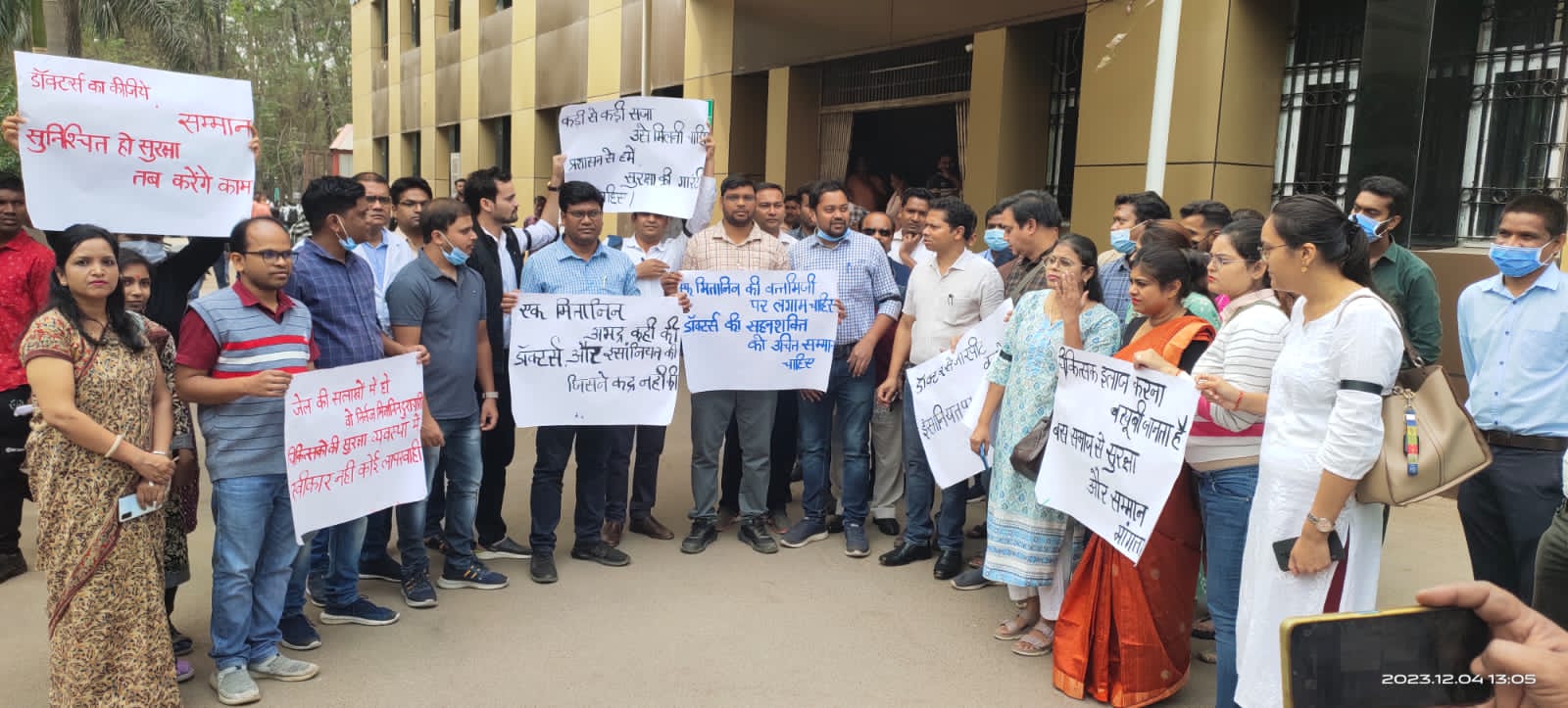 अस्पताल में प्रदर्शन कर रहे साथी डॉक्टरों से कहा की हमारी साथी ऑन ड्यूटी डॉक्टर के साथ एक मितानिन द्वारा मारपीट और बदसलुखी के खिलाफ पुलिस से शिकायत की गई है,परंतु पुलिस ने मामूली धाराएं लगाई गई है,हम मितानिन महिला पर कड़ी कार्यवाही की मांग को आज सांकेतिक प्रदर्शन कर रहें है। इसके अलावा हमने पुलिस अधीक्षक और सायबर सेल को भी लिखित शिकायत की गई है।