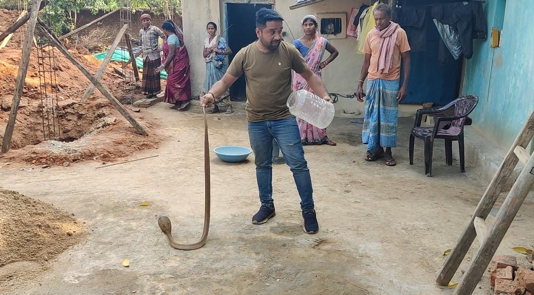 यह समझते देर नहीं लगा की वह नाग सांप हैं जिसके फ़ौरन बाद इसकी जानकारी वाइल्डलाइफ रेस्क्यू टीम प्रमुख जितेंद्र सारथी को दिया ।