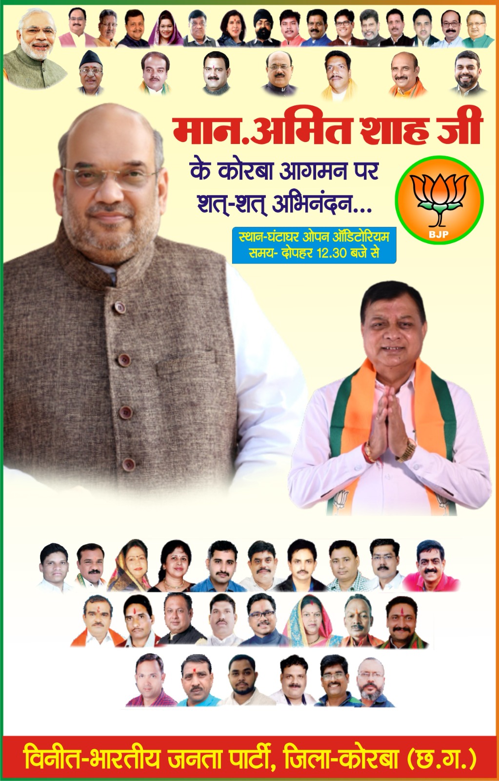 : केंद्रीय गृह मंत्री माननीय श्री अमित शाह का दिनांक 15.11.2023 को जिला त प्रवास पर आगमन प्रस्तावित है।
