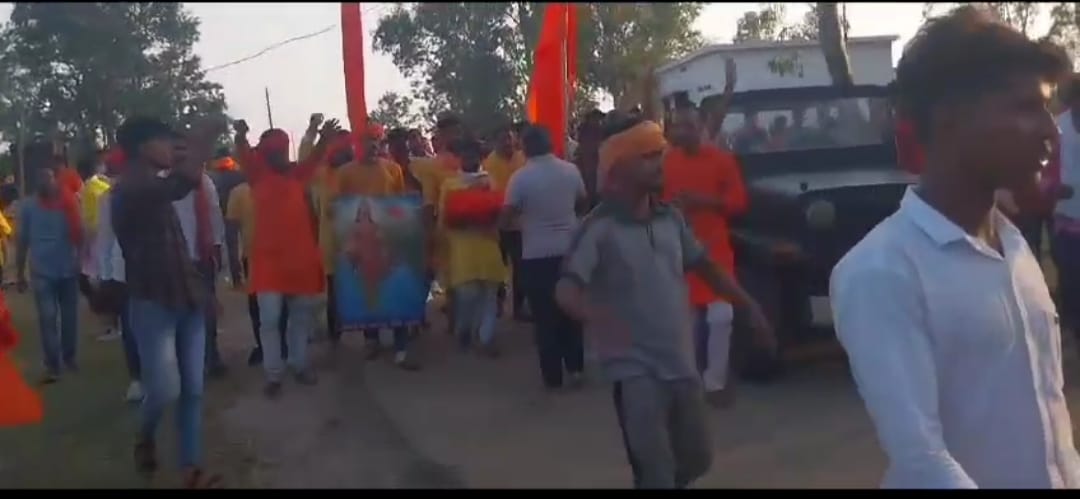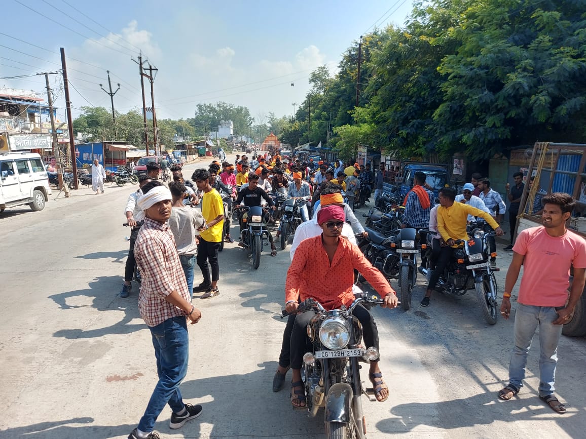 : विश्व हिंदू परिषद, बजरंग दल जिला कोरबा के द्वारा राम जानकी मंदिर बुधवारी बाजार, कोरबा से मातिन दाई, तानाखर के लिए धर्म ध्वजा यात्रा निकाली गई।