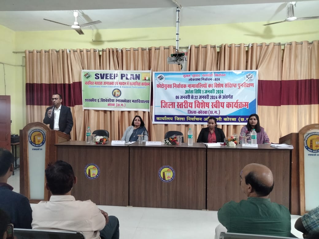 कोरबा भारत निर्वाचन आयोग के निर्देशानुसार 6 जनवरी 2024 से 22 जनवरी 2024 तक विशेष संक्षिप्त पुनरीक्षण कार्यक्रम जिले में संचालित है। इस संबंध में कलेक्टर एवं जिला निर्वाचन अधिकारी श्री अजीत बसंत की उपस्थिति में आज ईव्हीपीजी महाविद्यालय कोरबा में विशेष संक्षिप्त पुनरीक्षण के संबंध में नवीन मतदाताओं का मतदाता सूची में नाम दर्ज किए जाने हेतु विशेष शिविर का आयोजन किया गया। इस अवसर पर कलेक्टर ने युवा मतदाताओं को मतदान का महत्व बताते हुए कहा कि लोकतंत्र के निर्माण में अधिक से अधिक मतदान का होना