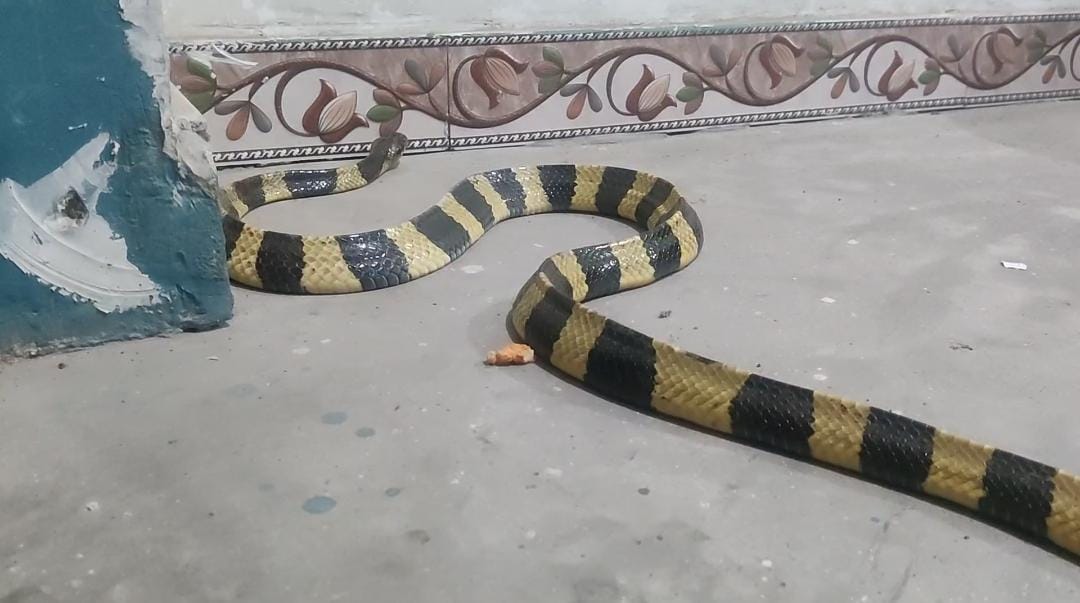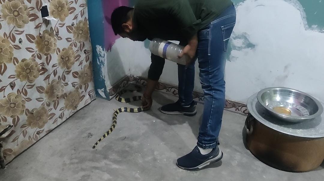 मेहमान कुछ समझ पाते डर से यहां वहां सब भागने लगे, जैसे तैसे घर वालों ने अपने पड़ोसी रविन्द्र साहू को उठाया और घर में साप घुसने की जानकारी दी, जिसके बाद रविन्द्र साहू ने बिना देरी किए इसकी जानकारी वाइल्डलाइफ रेस्क्यू टीम प्रमुख जितेंद्र सारथी को दिया और साथ ही बताया जिस घर में निकला हैं उस घर में एक व्यक्ति की 24 घण्टे पहले ही मृत्यु हुए हैं।