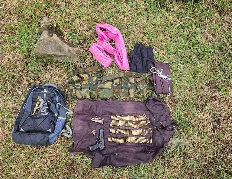 शनिवार को सेना की 49 आर-आर बटालियन और पुलिस ने सूचना के आधार पर ऑपरेशन शुरू किया और एक प्राकृतिक गुफा के पास इलाके में एक बैग पड़ा हुआ पाया। जवानों को सतर्क कर दिया गया। और संयुक्त टीम ने 159 एके -47 राउंड, एक पिस्तौल साथ नौ राउंड, खान-ड्रेस के अलावा एक काली पतलून, एक गुलाबी वॉटर प्रूफ सूट और एक बैग बरामद किया। वहीं पुलिस ने इस संबंध में मामला दर्ज कर लिया है।
