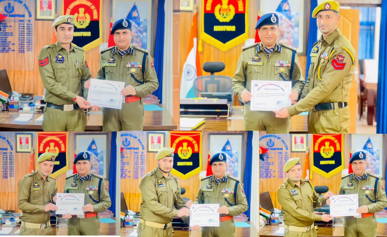 J&K/Kishtwar/News Udaan The Addl. Director General of Police Jammu Zone- Jammu Shri Anand Jain-IPS has recognized the outstanding performance of the (ESU) team of District Police Kishtwar by awarding them with a cash reward of Rs. 5000/- each, alongside Commendation Certificates. This accolade comes in acknowledgment of their exceptional dedication and exemplary service in fulfilling their duties.