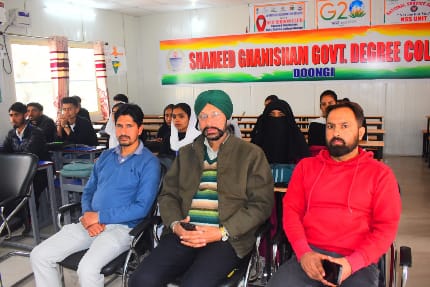 जम्मू/राजौरी /न्यूज उड़ान सीमावर्ती जिला राजौरी के अंतर्गत शहीद घनीशाम सरकारी कालेज डूंगी में विशेष शीतकालीन शिविर के आधीन पांचवें दिन कॉलेज की राष्ट्रीय सेवा योजना ( एनएसएस ) इकाई के स्वयंसेवकों ने सतत विकास लक्ष्यों (सस्टेनेबल डेवलोपमेन्ट गोल) पर एक दिवसीय कार्यशाला का आयोजन किया। कार्यक्रम में बड़ी संख्या में स्वयंसेवकों ने भाग लिया।