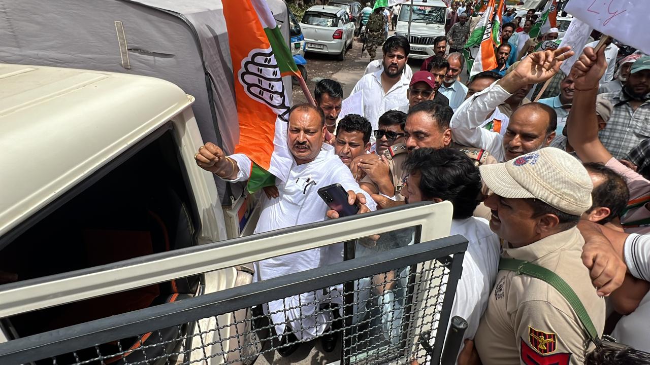 कांग्रेस जेकेपीसीसी हेडक्वार्टर राजौरी, व्यापार मंडल प्रधान राजेश गुप्ता उर्फ बिट्टू शाह और जम्मू-कश्मीर पूर्व राज्य मंत्री शब्बीर अहमद खान की अध्यक्षता में कांग्रेसियों ने जनविरोधी नीतियों के विरोध में प्रदर्शन शुरू किया तो, अब्दुल्ला पुल राजौरी के पास पुलिस अधिकारी जवानों ने पहुंचकर वरिष्ट नेताओं को घेर लिया और पूर्व मंत्री शब्बीर अहमद व राजेश बिट्टू शाह अन्य दर्जनों नेताओं को गिरफ्तार कर पुलिस थाना राजौरी ले गई।